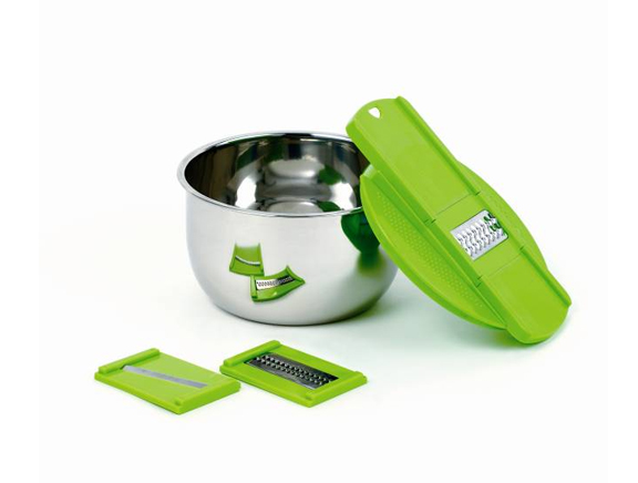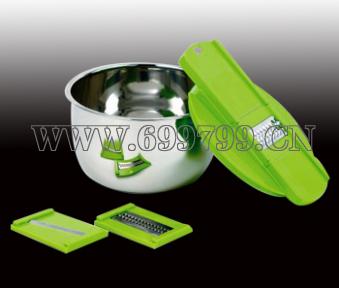 【产品规格】:1个不锈钢盆直径15cm,高9cm,1个塑料架,3个刨片