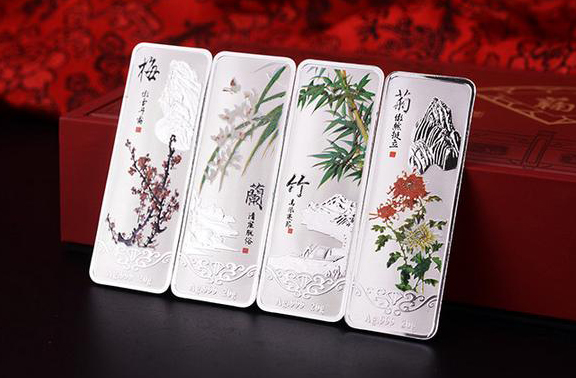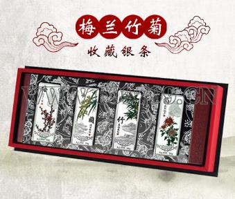 【产品规格】:1根银条长66mm,宽25mm,厚2mm 重量:1根银条20g梅兰竹菊共80g