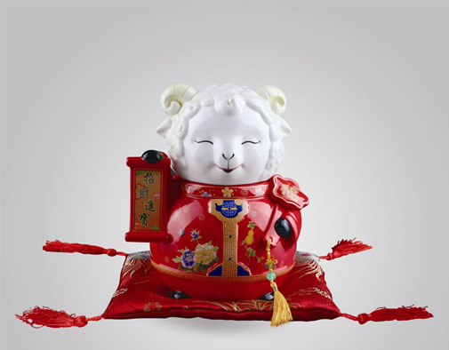 【推荐理由】:家有一羊 如有一宝 多少沾点儿羊气 每天招点儿财喜羊的招财寓意由来已久,早在远古时期,羊就被人们视作招财纳福的吉祥灵物。民间有“发羊财”之说,更有互赠“羊礼”之习俗。“招财羊”是天和生肖瓷偶的扛鼎之作,作品喜气洋洋,萌态外露,盈盈一笑间,喜由心生,财随喜到。工艺师采撷中国吉祥文化元素,历经十余月的呕心创作,千呼万唤始出来。“招财羊”笑颜迎财,左手抱如意,右手展对联,上书:招财进宝。“招财羊”身着富丽唐装,碎花领、如意襟、盘纽扣,背呈金色“福”字,蕴含着浓郁的中国吉祥文化韵致。衣裳缀以吉祥纹饰,牡丹呈富贵之相,葫芦取“福禄”之意,尽显招财意头。“招财羊”赏心悦目之外的储存功能,则是另一重欣喜,助你储物藏宝,每天招点儿财喜。