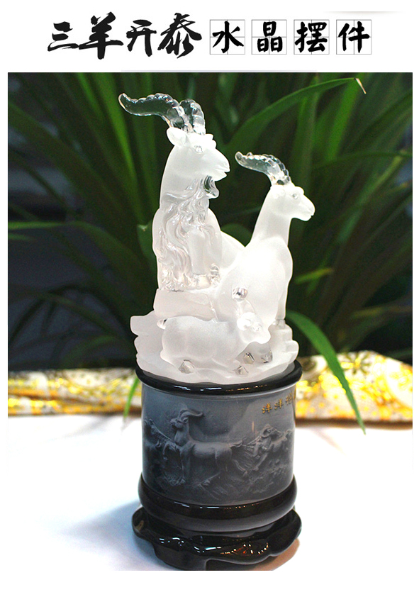 【推荐理由】:中国民俗中“吉祥”多被写作“吉羊”。羊,儒雅温和,深受人们喜爱,古代中国甲骨文中“美”字,即呈头顶大角之羊型,是美好的象征。水晶浮雕底座,可360°旋转。