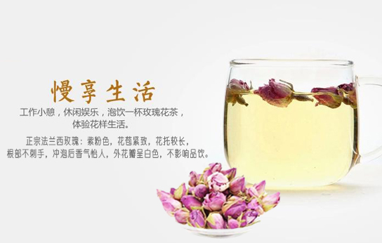 【推荐理由】:玫瑰花含丰富的维生素A、C、B、E、K,以及单宁酸,能改善内分泌失调,玫瑰花茶,性质温和,降火气,可调理血气,促进血液循环,养颜美容。且有消除疲劳,愈合伤口,保护肝脏胃肠功能,长期饮用亦有助于促进新陈代谢。