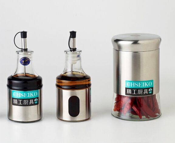 产品说明:中号储物罐600 8.5*15.5cm 中号油瓶:180*2