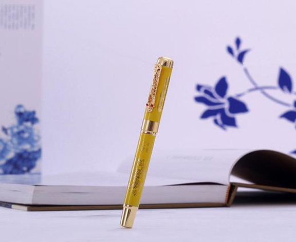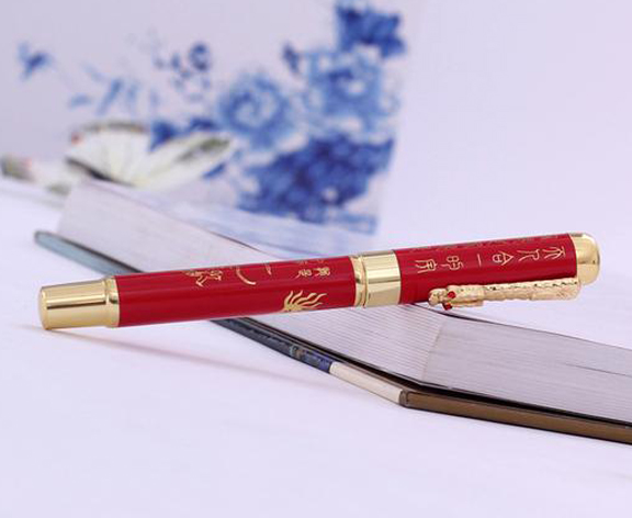【产品名称】:金泥坊龙头笔全铜件真瓷笔