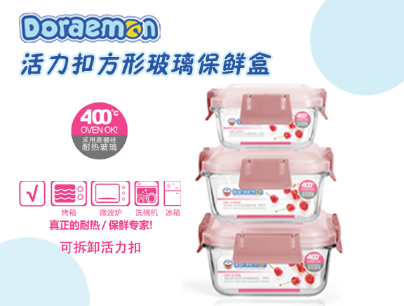 【产品名称】:尚盛哆啦A梦 活力扣方形玻璃保鲜盒(三件套)