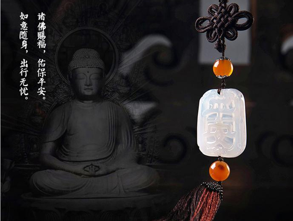 【产品名称】:臻玉平安天然玉石汽车挂件