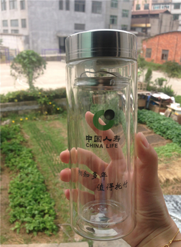 【产品名称】:高硼硅耐热双层玻璃杯 中国平安 人寿礼品广告