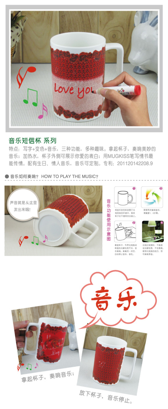 【产品特点】:真人和铉音乐、杯底灌装音乐芯片、底部有足够光线就会响起音乐。