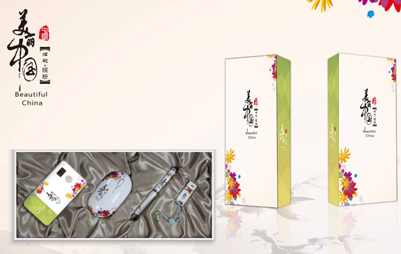 【产品特点】:本案以时尚花纹为设计元素,以电子产品为载体创意设计出美丽中国礼品套装系列。美丽中国礼品套装以一种“艺术生活化,生活艺术化”的艺术创作理念,将绚丽色彩融入现代时尚生活,采用炫彩缤纷色调创意独到,匠心独具。