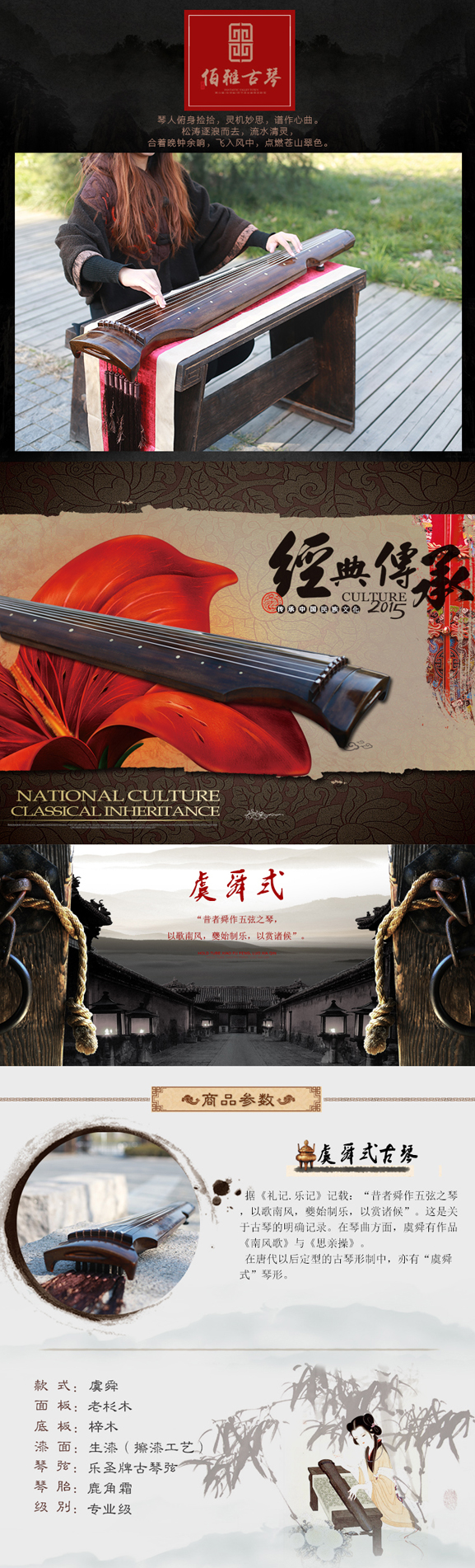 产品名称:唯雅古琴虞舜古琴