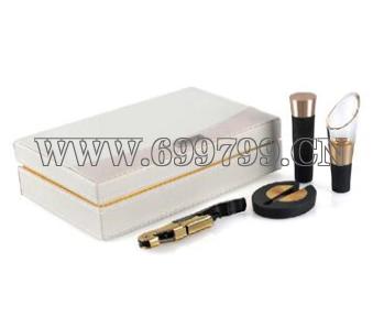 【产品配置】:割纸器,倒酒器,海马不锈钢开瓶器,便携式抽真空酒塞,止酒环。
