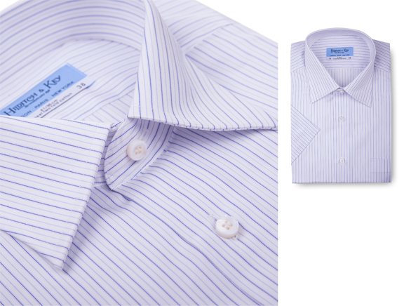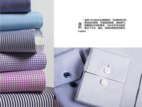 100%长绒棉,蓝白相间一直受到众多男士的青睐,八字领也是职场上的首选。