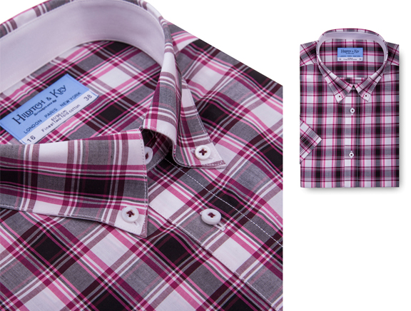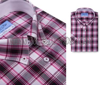 100%长绒棉,红灰黑的搭配,并在领尖钉上扣子,扣线采用红色,十分适合休闲时的穿着。