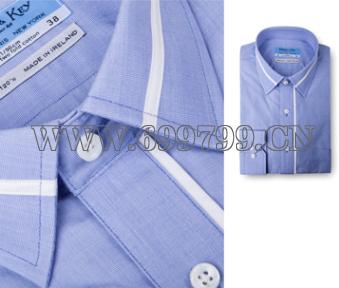 100%长绒棉,经典蓝色面料,领门襟镶拼白色,小尖领,斜角袖口,时尚不失稳重。