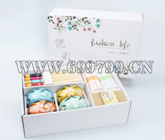 产品尺寸:筷子长度22.5厘米、碗4.5寸、洗碗巾65*40厘米、丝瓜海绵12*7.5*6厘米