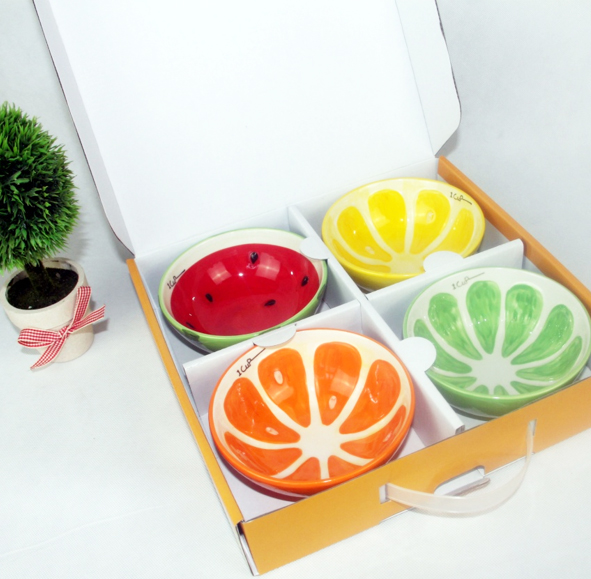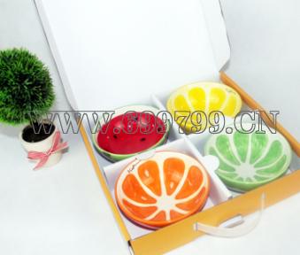 组合:四个水果陶瓷碗、精美纸盒包装