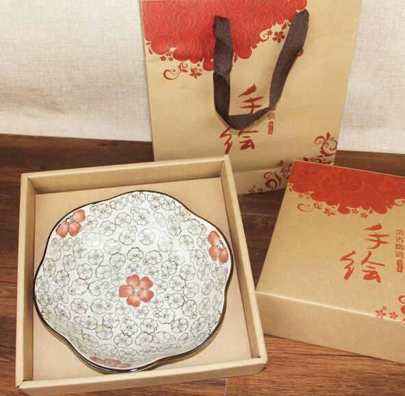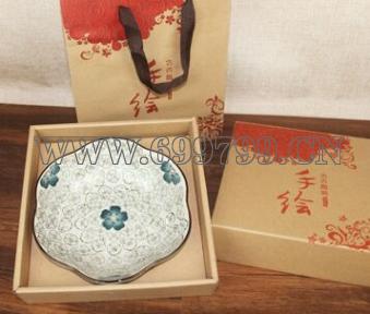 【产品说明】:此款干果盘经高温烧制,花纹纯手工绘制,古典韵味。可用来盛放水果、各种干果、糖果、沙拉、小菜、牛排等。
