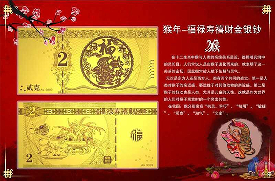 品名:猴年金钞---和韵系列