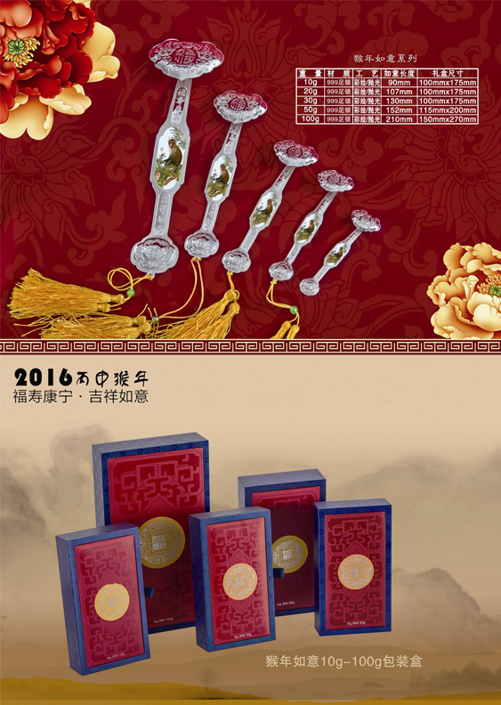 品名:猴年银如意----呈名系列
