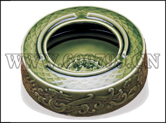 产品名称:活瓷龙纹烟灰缸(绿釉)