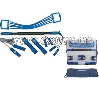 5条可拆胶管拉力器、臂力器、两个哑铃、两个握力器、跳绳