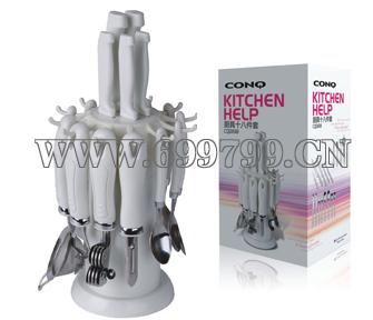 产品特点:精选食品级原料及高品质不锈钢生产,配有多种刀具、餐具及实用厨房工具,实用大方,