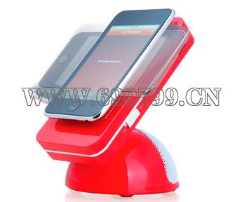 产品特点:钛面音箱,音质出色;特别设计防滑座,可用来摆放手机MP3/MP4/IPOD等.