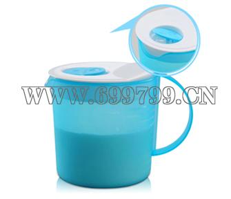 产品说明: 进口食品级PP原料生产,磨砂半透明蓝色壶加白色盖赏心悦目,超值体验。1000ML超大容量盛装豆浆、果汁,冰茶等饮品并带刻度显示,入微波炉或冰箱均可,实用也不失时尚!大面积的LOGO位将促销广告体现得淋漓尽致。