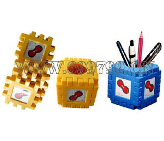 产品说明;此产品由六个面组成,五面可放置照片;取任意三片或者三片以上就可以组合起来一个精美的笔筒,也可以组装
