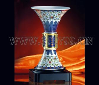 编 号:3.99M.340M0001A 名 称:欣欣向荣(景泰蓝樽) 规 格:162*162*300MM 描 述: 樽是传统礼器之一,是身份和地位的象征。骨瓷景泰蓝樽,在保持樽大气、尊贵的基础上,注入积极向上、奋发有为的文化精神,让其更具思想性、时代性,有励志功效,更有观赏美感。金属结合陶瓷,展现一种工艺之美,增加了产品的文化附加值。可作馈赠、收藏、奖杯之用。