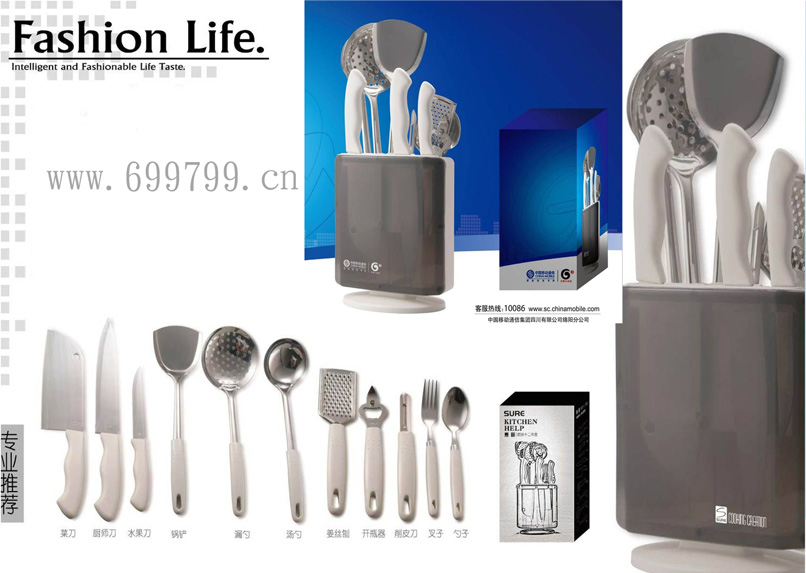 产品特点:专业搭配,大广告位,现代厨房理想选择。集厨具、刀具、餐具于一体,厨房常用装备,一应俱全。