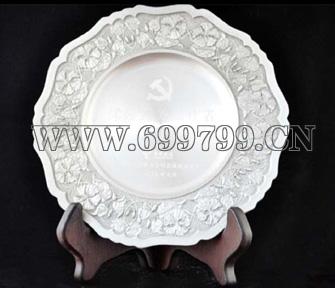 编号:P2036S 规格: Φ170x10mm 产品描述:纯锡盘,可随客户的意愿设计加工,或在现有产品上刻各种纪念性图标、文字,因锡盘的抗氧化不生锈的特性,能长时间保持原样不退色,可做案台饰品及收藏纪念礼品。