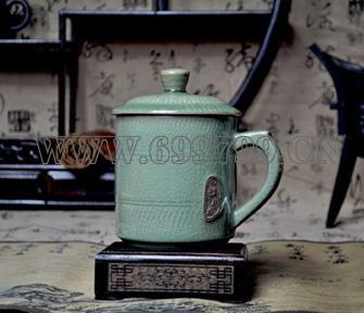 该产品釉色青绿润透,器形端庄大方,浑厚稳重又不失纤巧,尽显一种洗尽铅华的深蕴的美。加上杯把处名家篆刻艺术,整体上更给人以高尚、稳重的感觉.