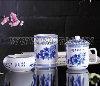 产品名称:唯雅花开富贵青花台面杯三件套 瓷器类时尚工艺品 颐和源系列