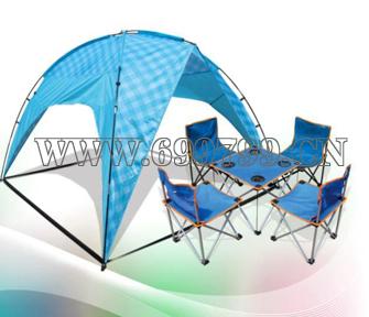 规格尺寸:材 质:600D牛津布/碳纤维杆 ;产品规格:220cm×220cm×180cm ;配 件:遮阳篷/4把椅子/一张桌子