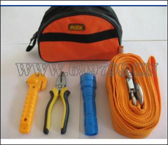 规格尺寸:5件套应急工具包 1PC 半圆包 1PC 仿警电筒 1PC 拖车绳 1PC 应急锤 1PC 钢丝钳