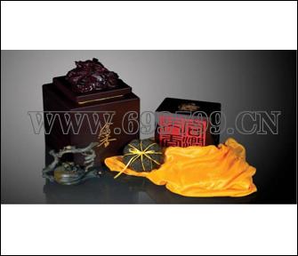 产品简介:中华祥瑞以宝玺为造型,象征着无上的权威与地位,是对受礼者的无限尊崇。作为高端茶礼,采用西双版纳易武出品5年极品普洱陈料精心拼配而成,外盒以优质实木精雕细作,更突显其尊贵品味。