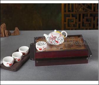 规格尺寸 : 材 质 老孟宗竹、无光釉玉脂瓷 ; 配 置 茶盘、茶壶一个,茶杯四个,茶巾一条,礼盒包装
