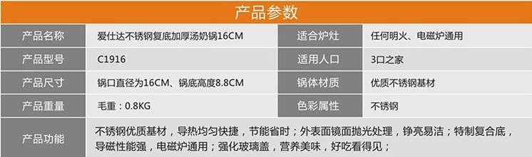 产品名称 : 爱仕达 唯雅不锈钢奶锅-WY-76