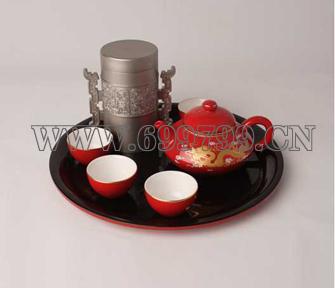 规格尺寸 :组合套件及材质 中华红龙套壶、锡茶叶罐、漆器茶盘