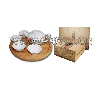 产品配置 一壶、四杯、一竹板、一纸盒、一牛皮纸袋 制做工艺 产品选用上等高岭土烧制,整体简洁大
