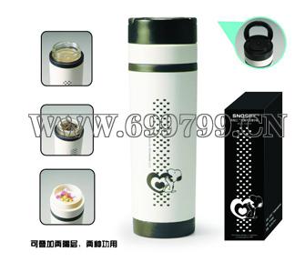 产品简介:全新玻璃内胆设计,玻璃与PP的完美结合,百分百密封,双层不烫手。个性化储藏格,可放置营养素、咖啡、茶包等。带茶漏设计,方便茶品饮用。便携手提杯盖设计,方便携带。