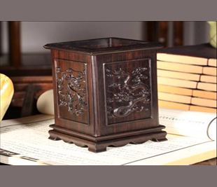 产品名称:唯雅黑檀木龙腾四海笔筒 博厚系类