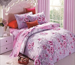 产品阐述:紫色为主色调,艳丽花朵、每朵花儿都代表您对其的喜爱,就如您躺在群花丛中,幸福,温馨。此款产品采用128X68高密沙织面料,质地为100%纯棉,AB版面料,做工精细,柔软舒适,吸湿透气,花样独特,能赋予您家居时尚个性气息。