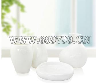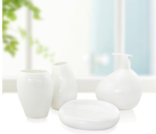 规格尺寸:材质:骨瓷 规格:漱口杯:300ML*1,牙刷杯*1, 沐浴瓶:600ML,香皂盒*1 颜色:精品白