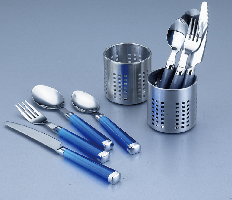 产品简介:整组餐具边缘柄部形状包边圆顺、光亮,刀齿、叉齿平整,叉缝处理到位。餐具无磁性,耐腐蚀性强,与食品接触无禁忌。