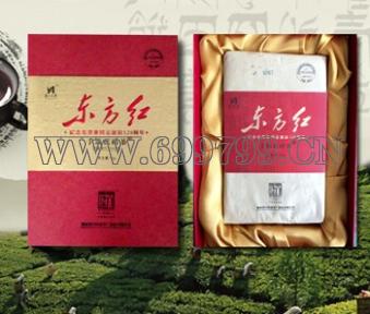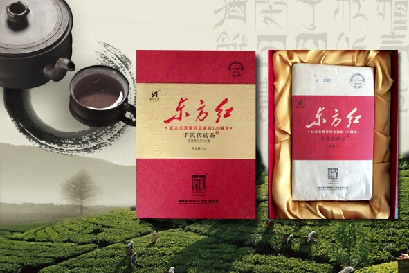 1953年湖南省第一片茯茶在白沙溪试制成功,东方红手筑茯砖纪念以安化黑毛茶原材,通过筛分、发酵形成半成品,再经过手工筑制,发花干燥而成。该款花品在其独特的发花过程中产生了一种有益菌(冠突散蘘菌),俗称(金花),它一方面吸收茶叶中的有效成分,另一方面自身代谢,产生一系列有益与人体健康的分子化合物,茶砖松紧度适中,金花茂盛,汤色洪亮,滋味滋味醇和,具有抹除油脂、助消化与防治肠道疾病之辅助功效、且品质优于一般茯砖,为宜饮宜藏之佳品。