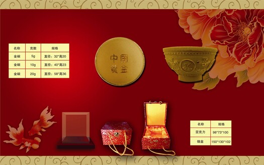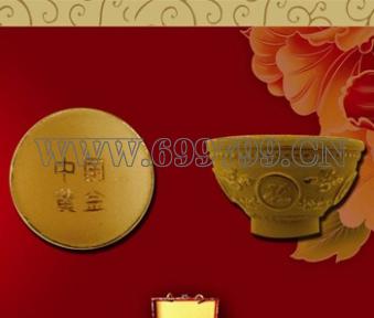金碗,是我国名俗中一种吉祥物,是财富和金钱的象征。碗口阔如天、碗腹深如海,圈足稳如地,回形纹缠饰,寓意“承纳天地福运,藏收四海财富,集蕴乾坤久福”。碗体外图案为“福”“禄”“寿”“禧”“财”寓意五福相伴,人生幸福完美,尽湿洪福齐天,福运惠及万代之意,造型独特。它不但具有鉴赏性、纪念性、保值性永久收藏品,也是具有名族风采的馈赠海内亲友的国际贵宾的高尚礼品。